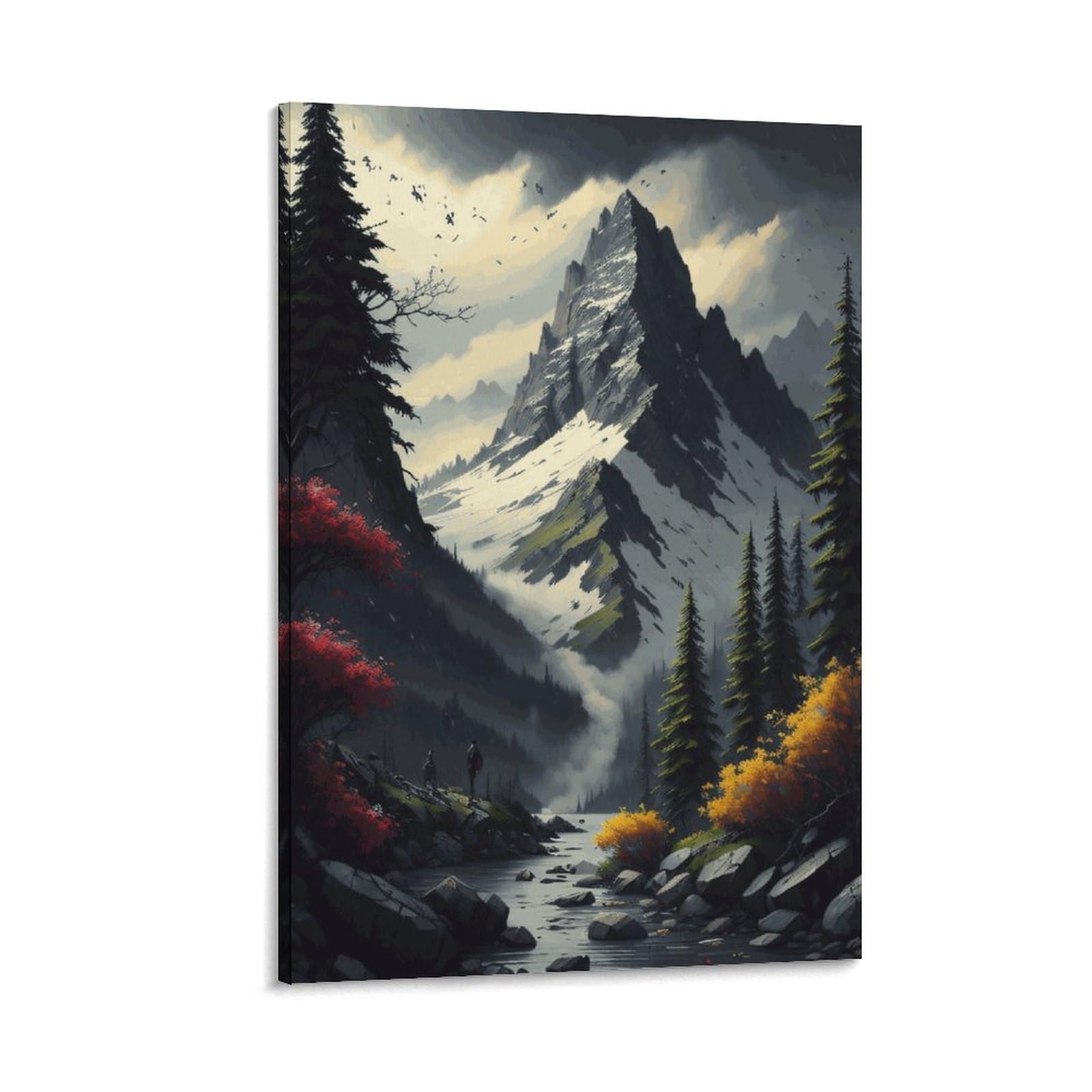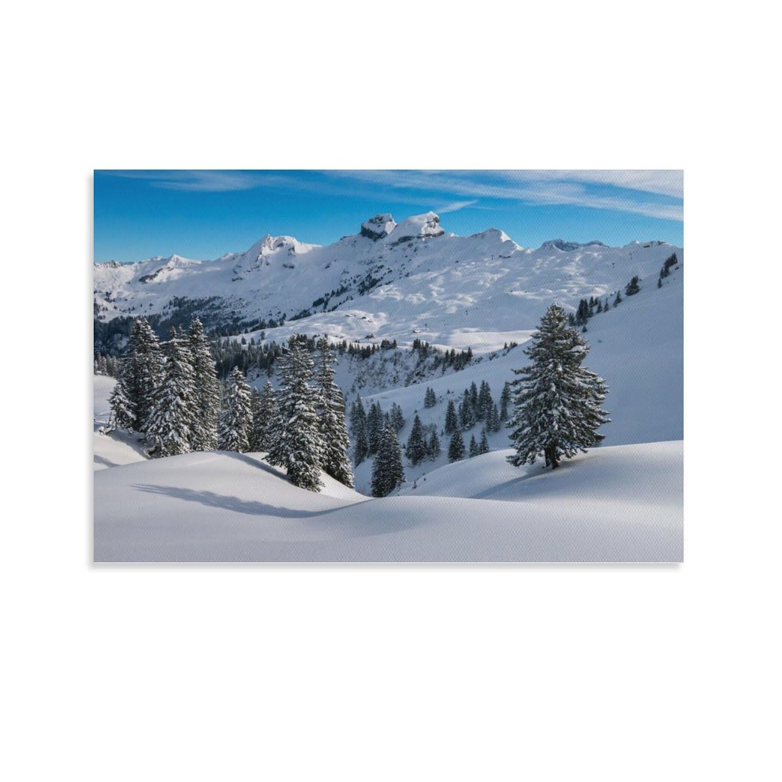 Árbol, montaña, invierno, bosque, nieve, entorno natural, paisaje, pintura, decoración nórdica, sala de estar, decoración del hogar, 24 x 36 pulgadas ...