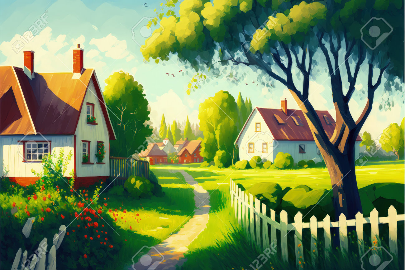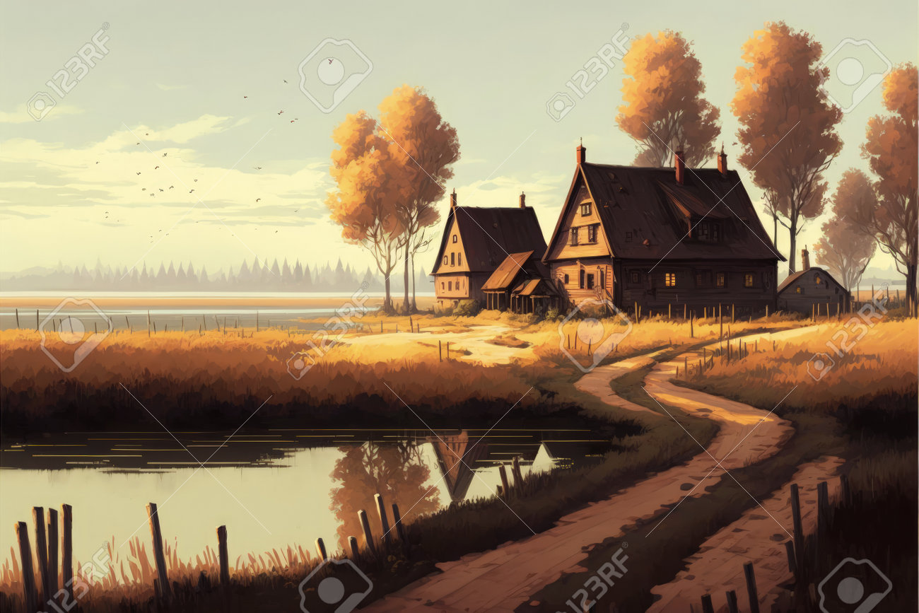 Paisaje De Antiguas Casas De Campo En Medio Del Entorno Natural En ...