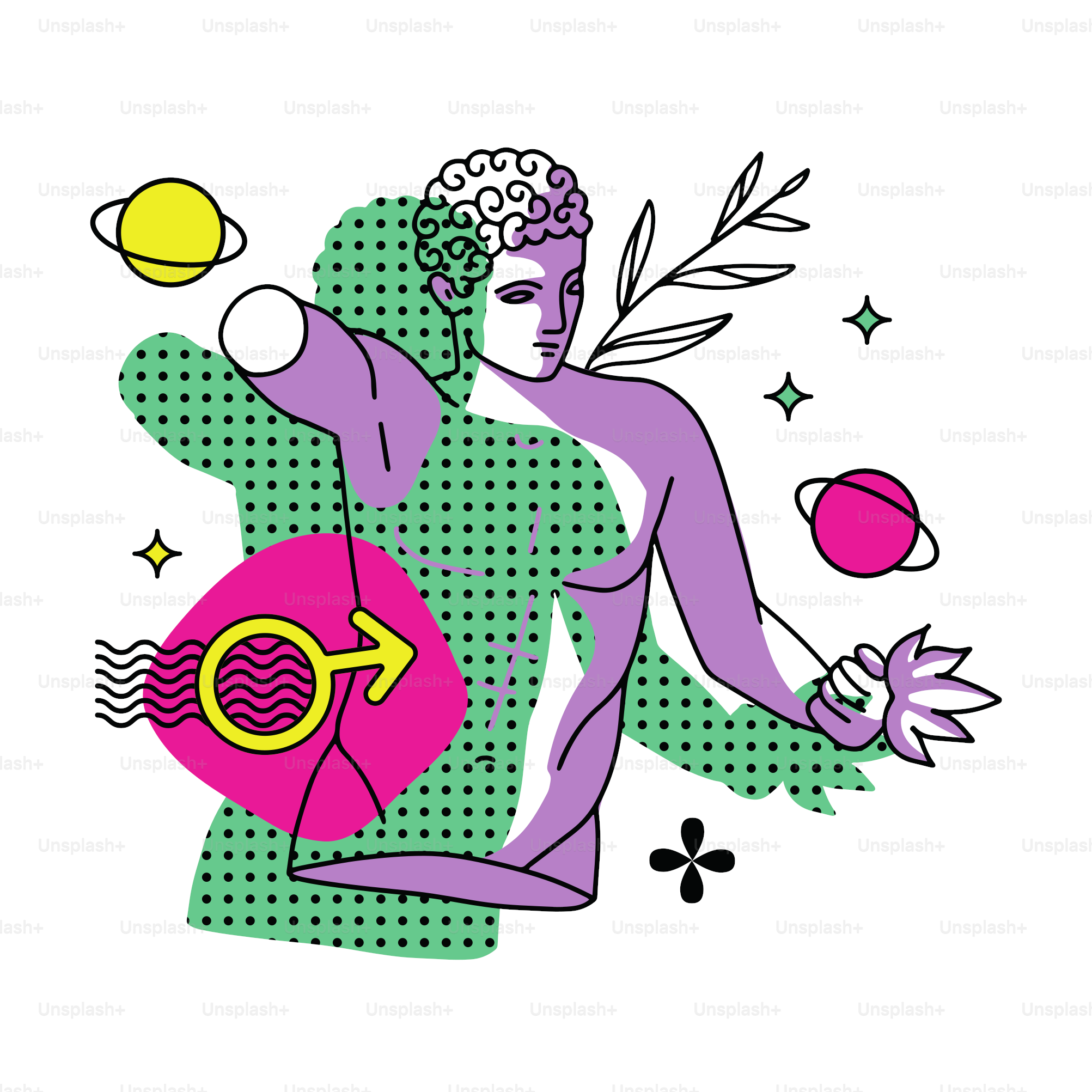 Concepto De Escultura Trippy Griega Con Planetas De Mano Estrellas ...