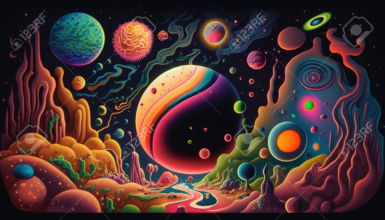 Colorful Psychedelic Galaxy and Planets in Space Illustration ...
