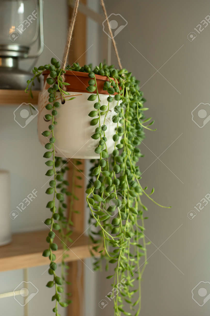 Planta De La Casa Senecio Rowleyanus En Una Maceta Colgante Blanca ...