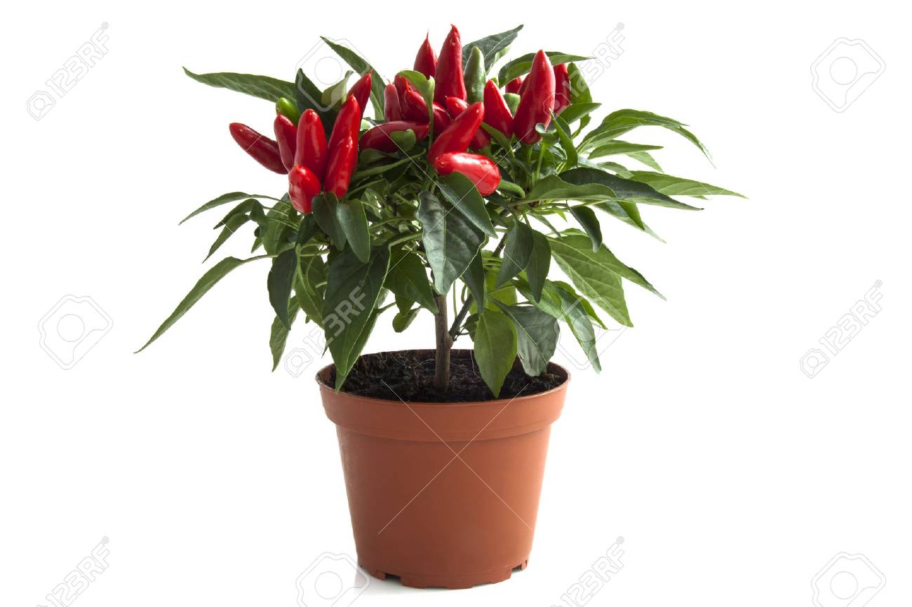 Planta De Pimiento Rojo En Frasco Marrón Aislado Más De Blanco ...