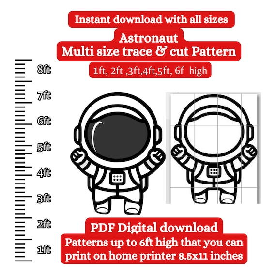 Silueta de astronauta de 5 pies Trazo y corte imprimible, Fiesta ...