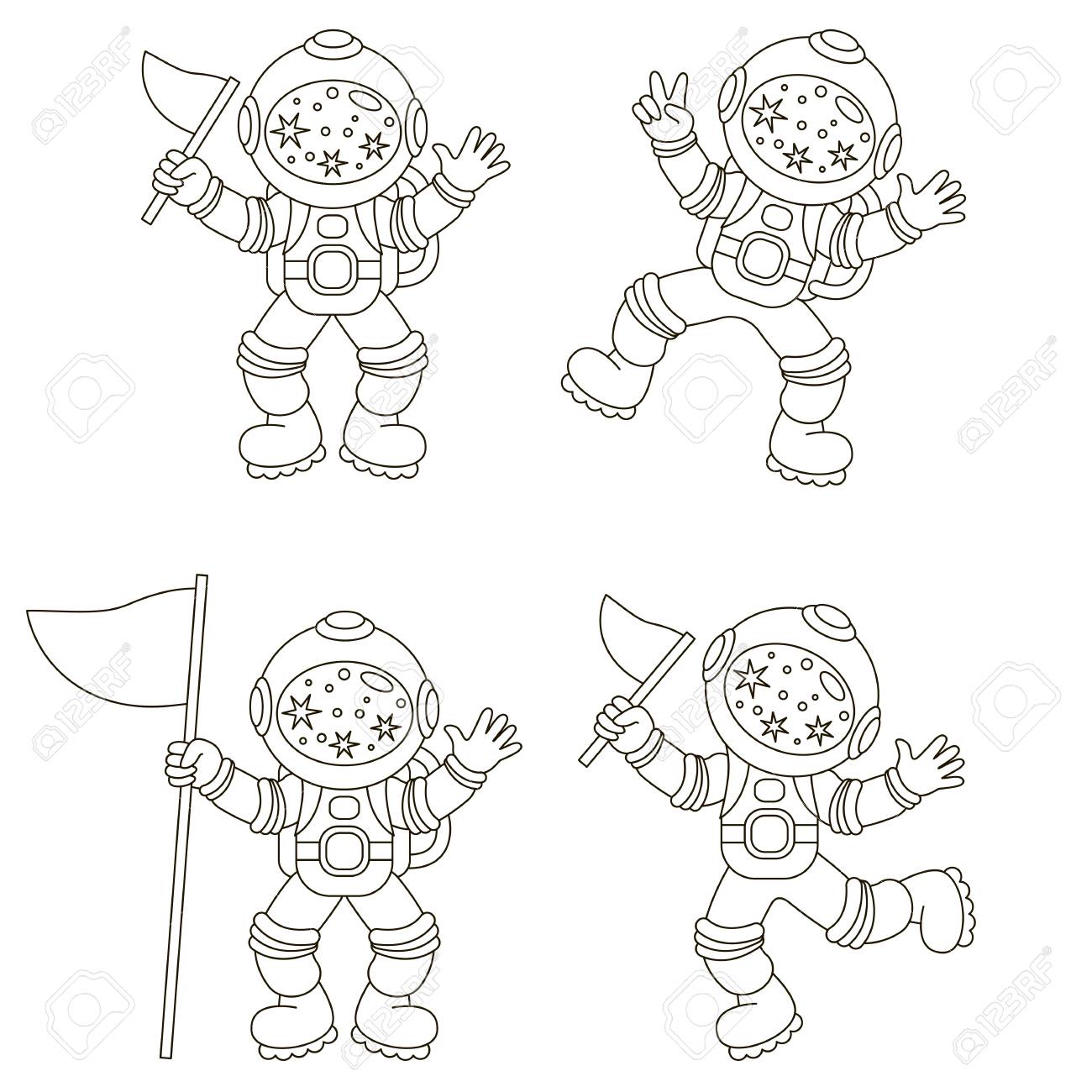 Juego De Astronauta, Colección De Plantilla De Libro Para Colorear ...