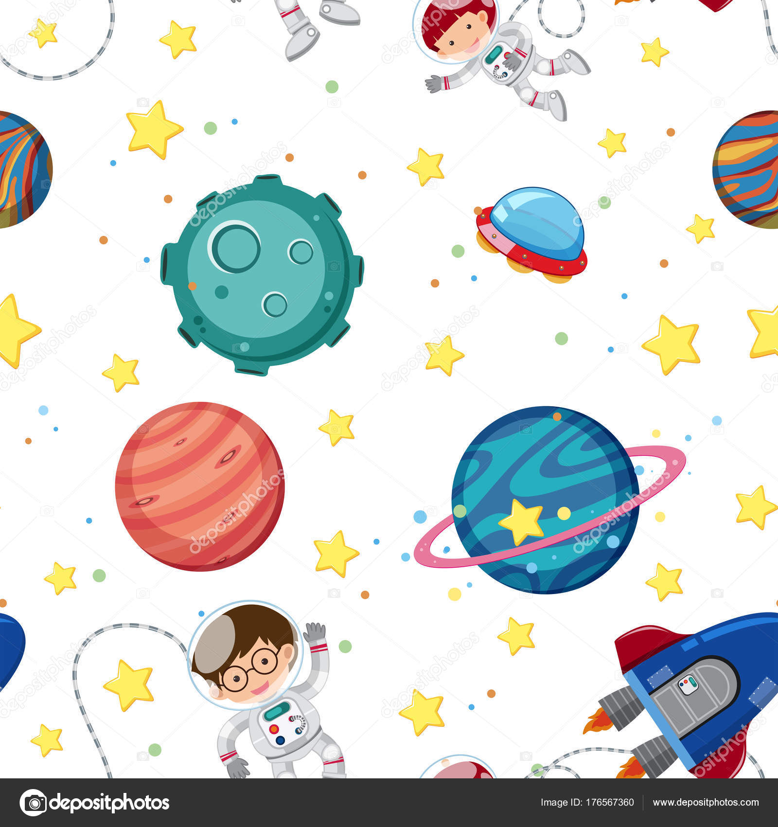 Plantilla de fondo sin costuras con astronautas y planetas Vector ...