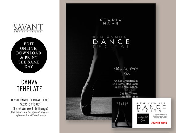 Dance Recital Flyer Poster, Dance Recital Tickets, Editable, Canva ...