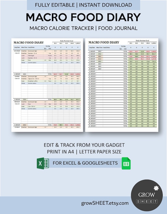 Diario de alimentos macro / Diario de alimentos diario con ...