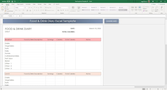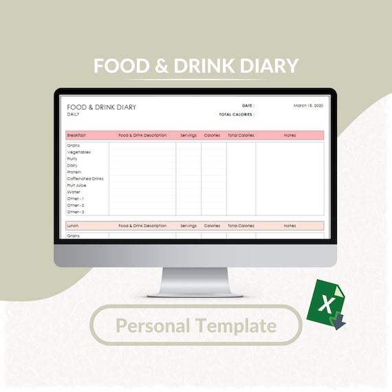 Plantilla de Excel del diario de alimentos y bebidas / Diario de ...