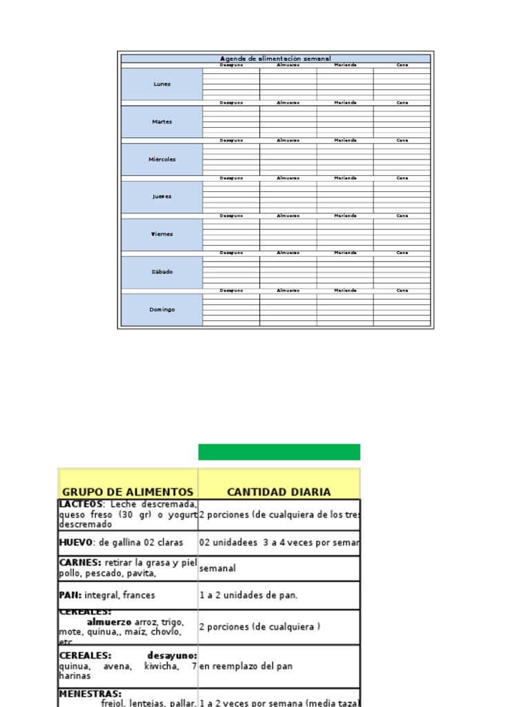 Planilla de Excel para El Control de Alimentacion Semanal | PDF ...