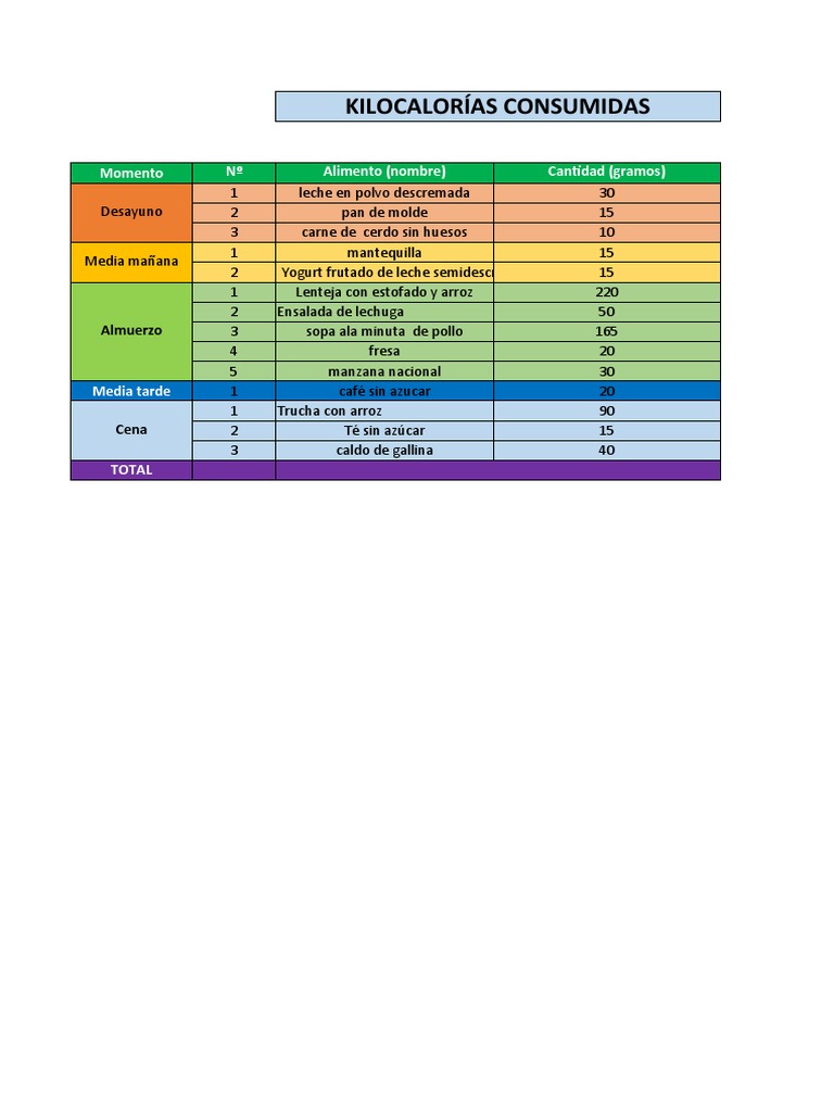 Control de calorías diarias con Excel - Ayuda Excel