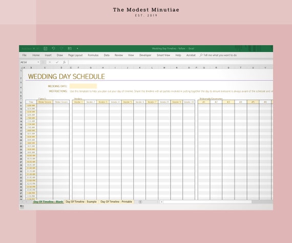 Línea de tiempo del día de la boda amarilla Plantilla de Excel ...