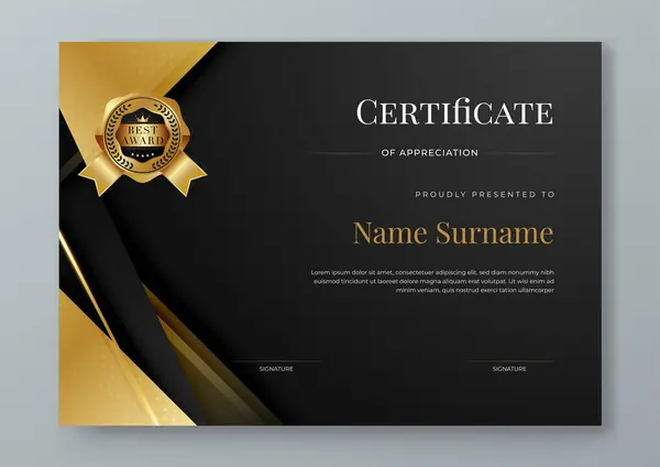 Certificado de plantilla de logro con color negro, blanco y dorado ...