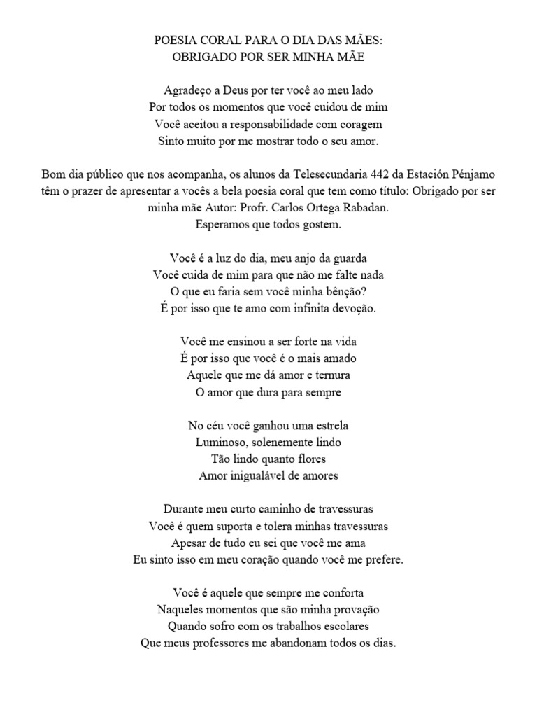 Poesia Coral para o Dia Das Mães (2300) | PDF | Amor