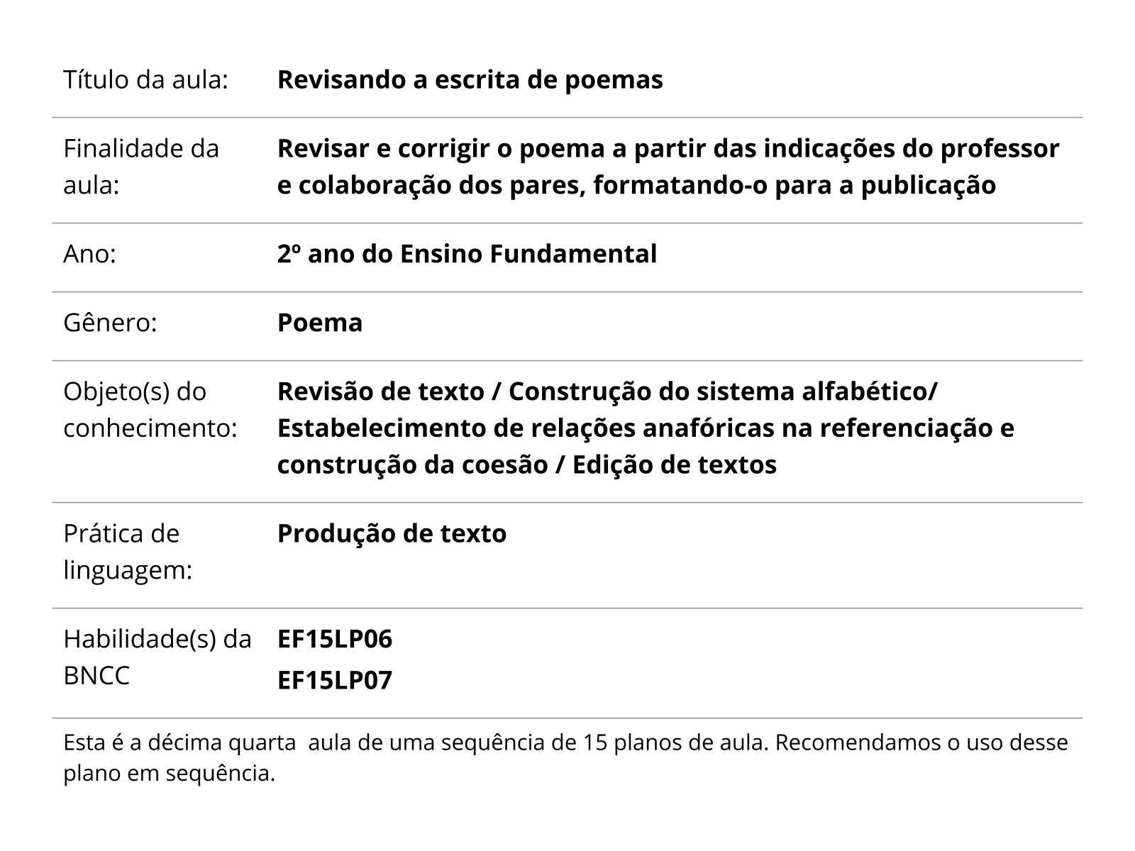 Plano de aula - 2º ano - Revisando a escrita de poemas