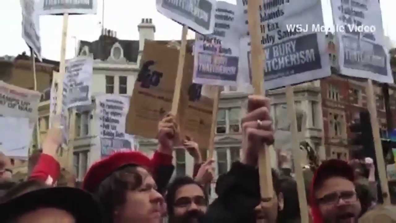 Protest in Trafalgar Square against Margaret Thatcher's legacy and ...