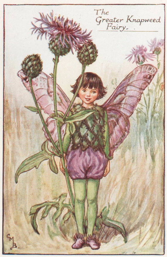 Hadas de las flores: El GRAN HADA DE KNAPWEED Vintage Print c1930 de Cicely Mary Barker