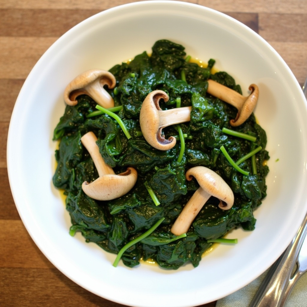 Salteado de Espinacas y Hongos Ostra Rey en Mantequilla
