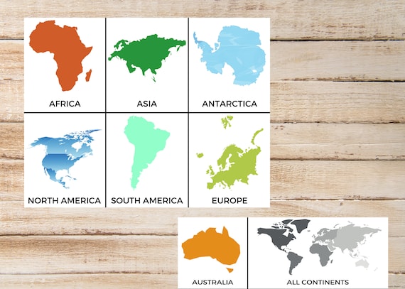Continentes de tarjetas Montessori de 3 partes, Tarjetas de continente para niños, Tarjetas de continente, Tarjetas Montessori para niños, Tarjetas de tres partes, Geografía mundial - Etsy España
