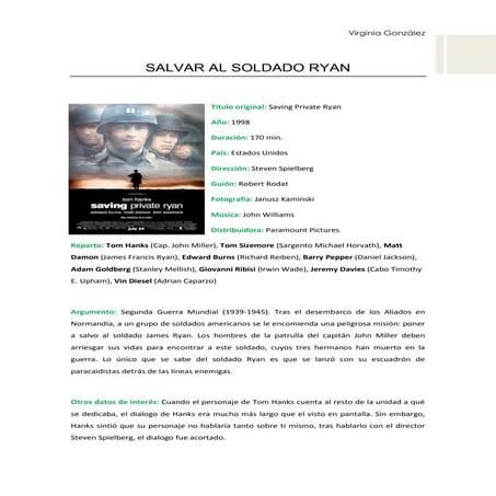Una clase de película: Salvar al soldado Ryan | PDF
