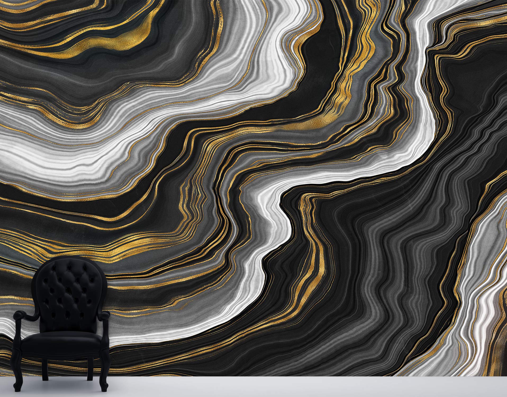 Abstractos remolinos de negro y oro Un lujoso efecto de mármol ...