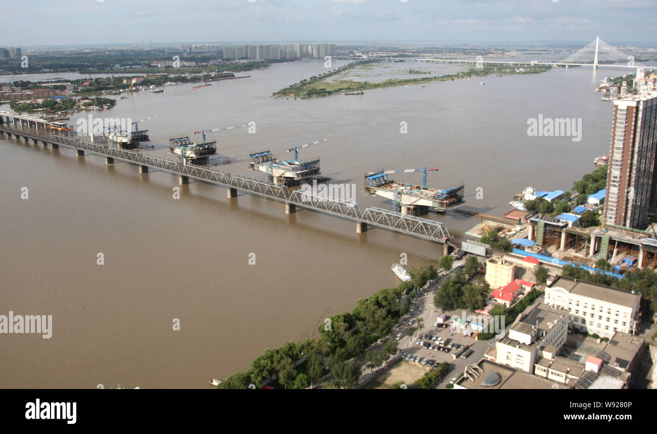 El Río Heilongjiang, o río Amur, está parcialmente cubierto de ...