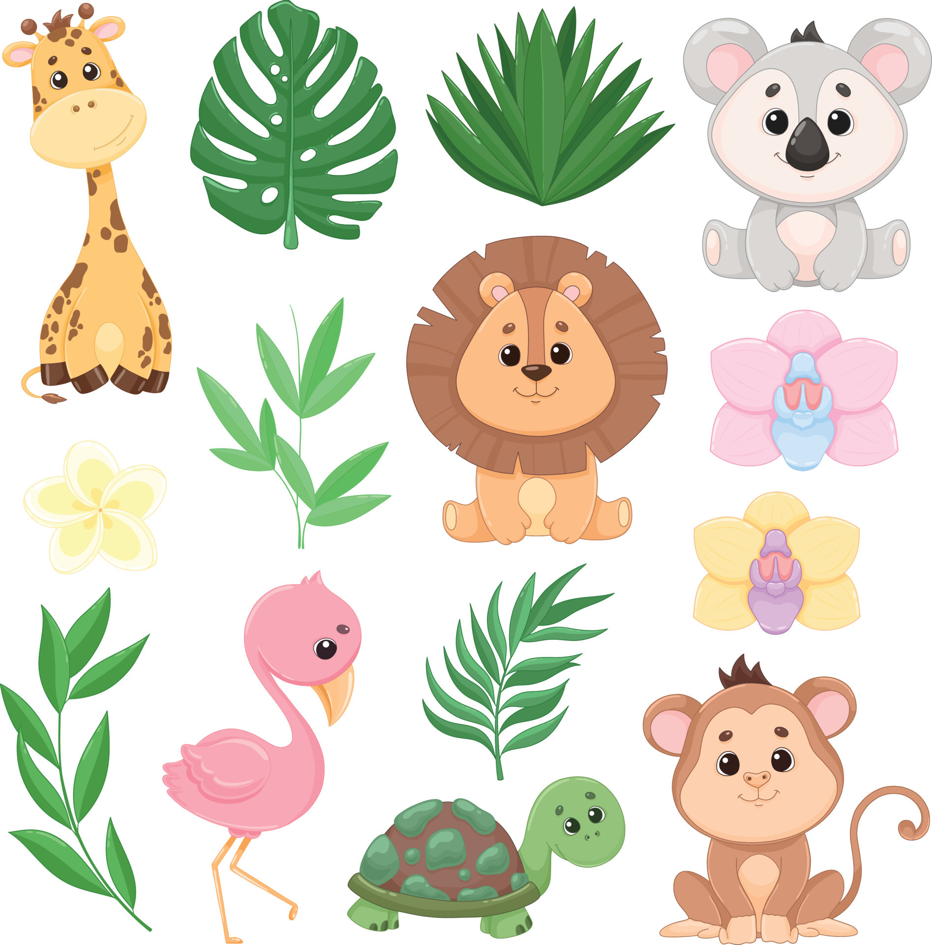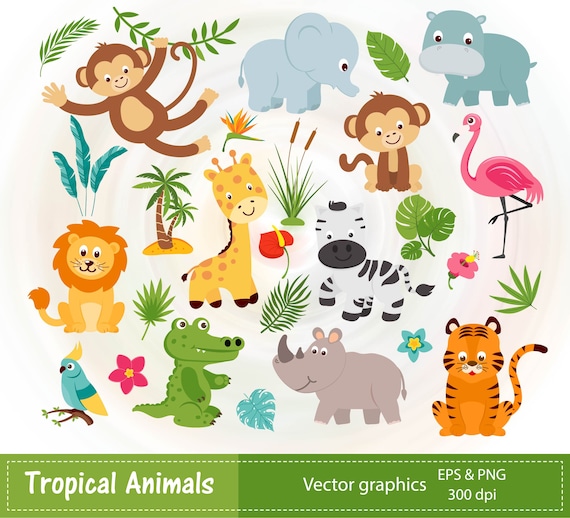 Conjunto de animales de safari, selva y plantas tropicales 8173931 ...