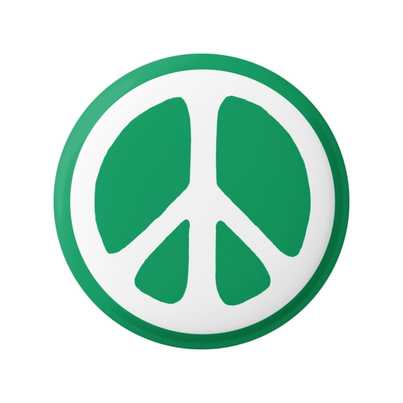 Signo de paz blanco sobre verde hippie 60s botón para mochilas ...