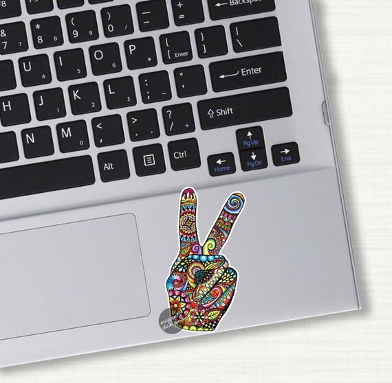 Hippie pequeño signo de la paz mano adhesivo - portátil etiqueta Yeti vaso etiqueta flor colorido signo de la paz símbolo de los años 70 lindo signo ...