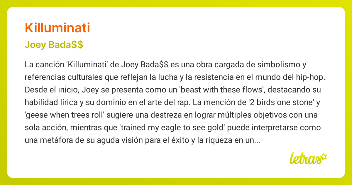 Significado de la canción KILLUMINATI (Joey Bada$$) - LETRAS.COM