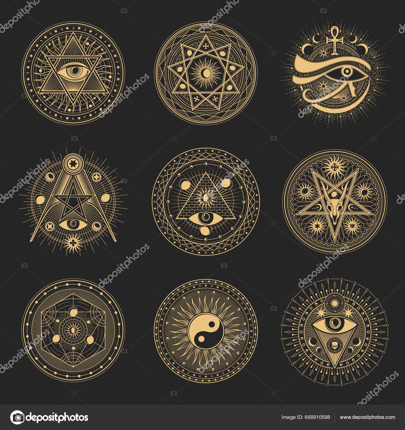 Mason Signos Oculto Esotérico Pentagrama Símbolos Vector Tarot ...