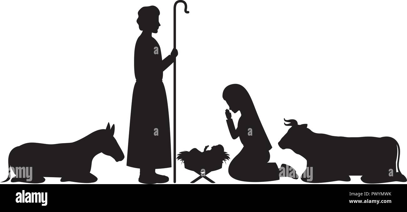 Silueta de la figura del pesebre de Navidad Imagen Vector de stock ...