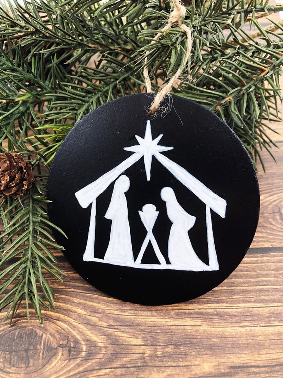 Adorno de belén de silueta en blanco y negro, adorno de Navidad de ...