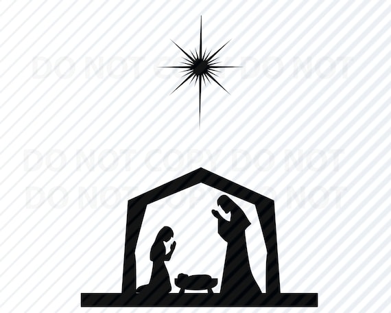Navidad Natividad SVG Silueta - Bebé Jesús Vector Imágenes Prediseñadas -Natividad SVG Imagen - Pesebre Siluetas - Eps, Png ,Dxf