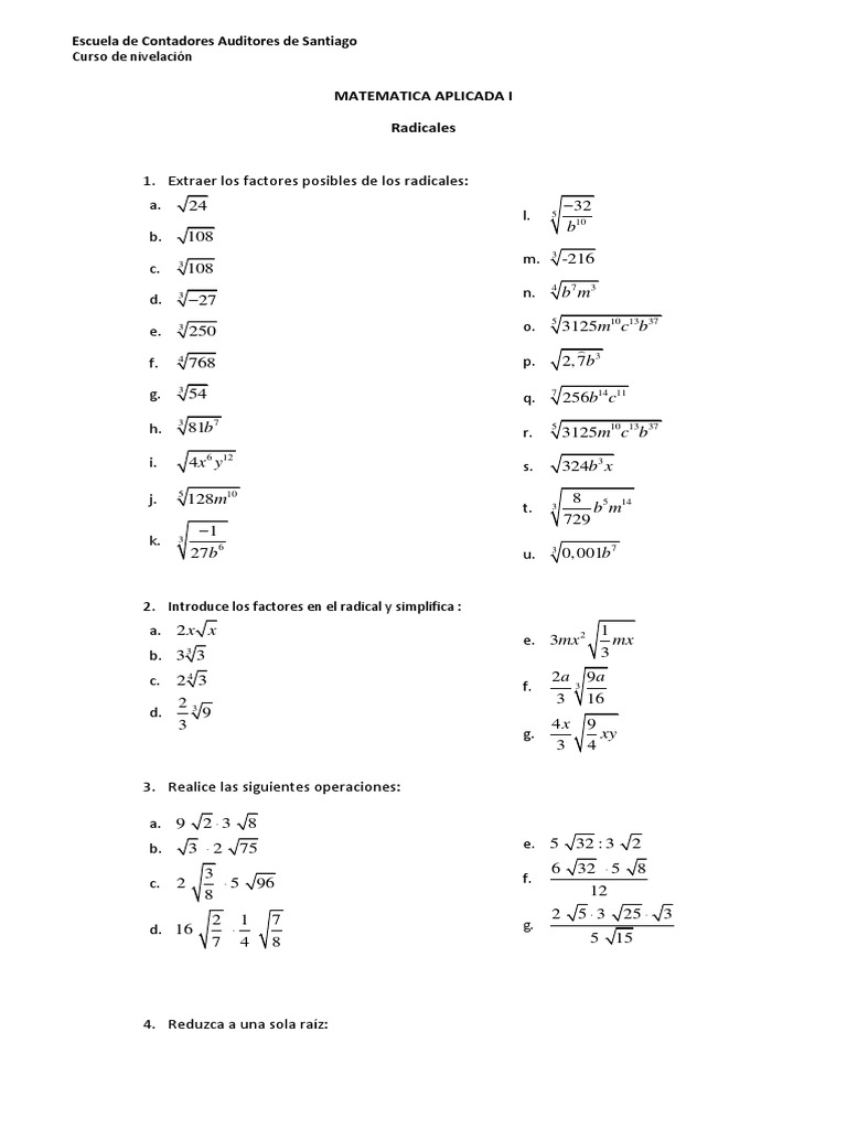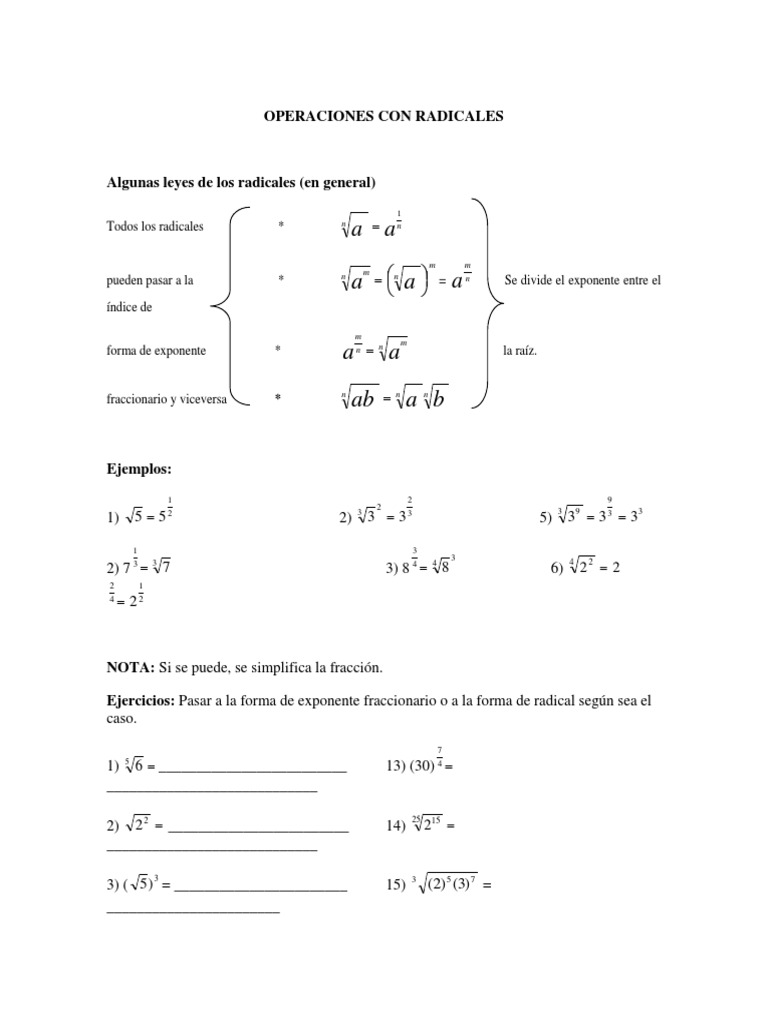 Simplificacion de Radicales | PDF | Fracción (Matemáticas ...