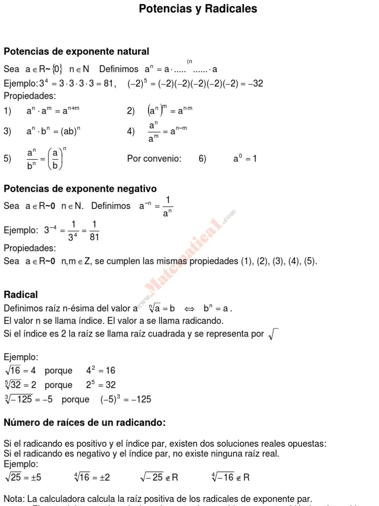 Potencias y Radicales | PDF | Fracción (Matemáticas) | Exponenciación