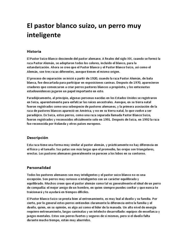 Pastor Blanco Suizo: Inteligencia y Lealtad | PDF | Pastor ...