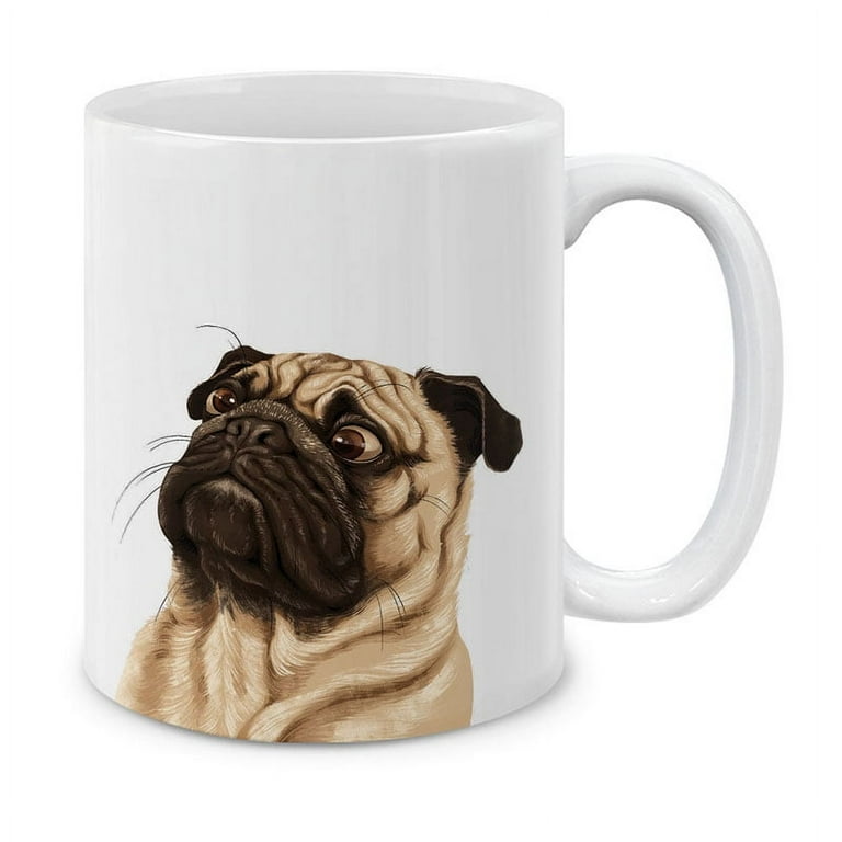 WIRESTER 11 Oz Ceramic Tea Cup Coffee Mug, Dazed Pug Puppy Dog ...