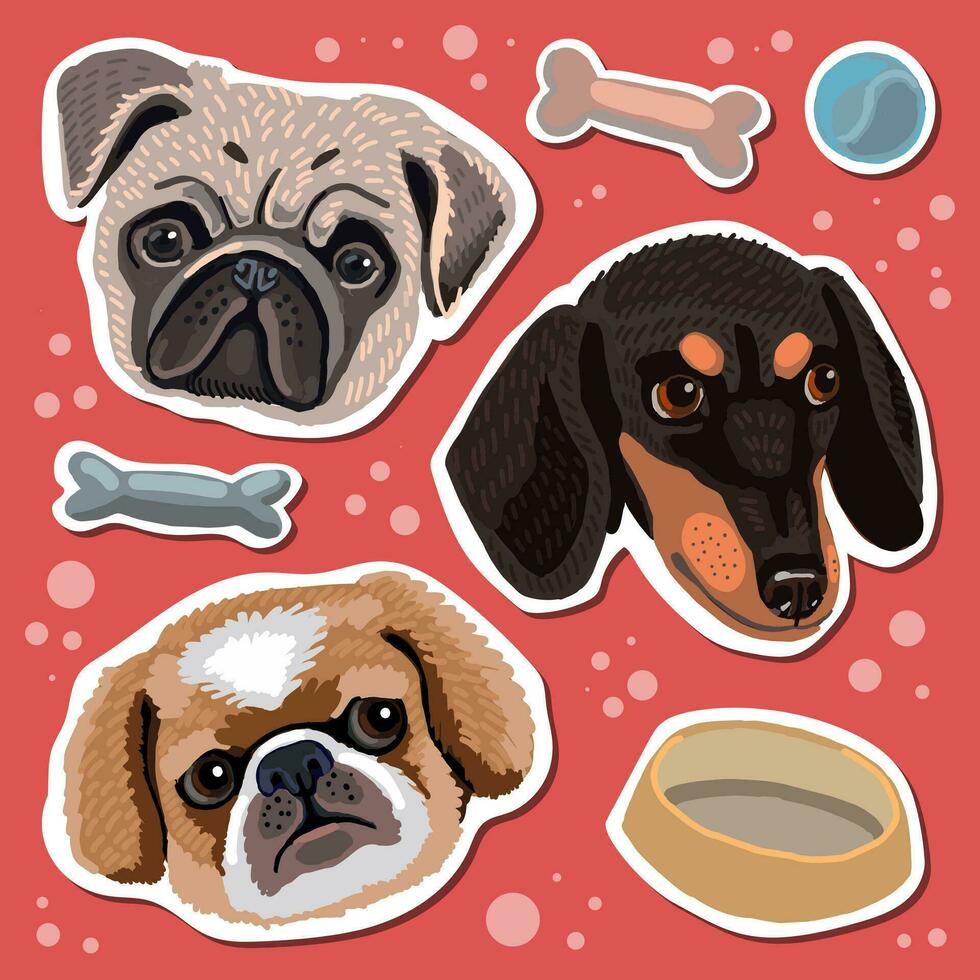 Cute dog stickers. Pekingese, dachshund and pug. Drawing in ...