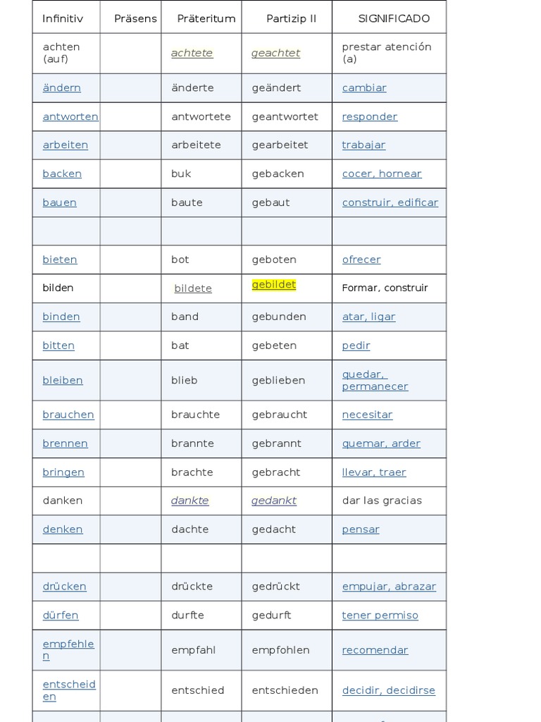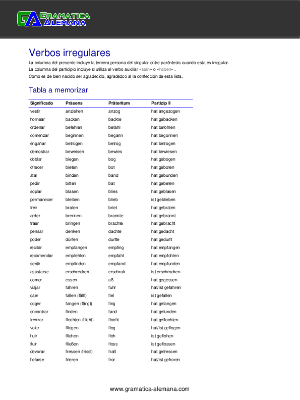 Verbos irregulares, fuertes, del alemán · listado con audio+pdf ...
