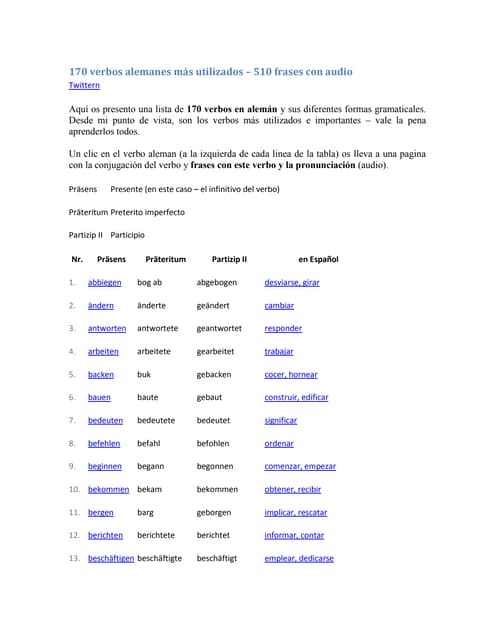 DOC) 170 verbos más comunes en alemán con traducción español ...