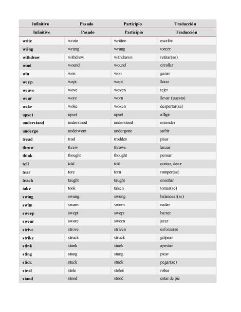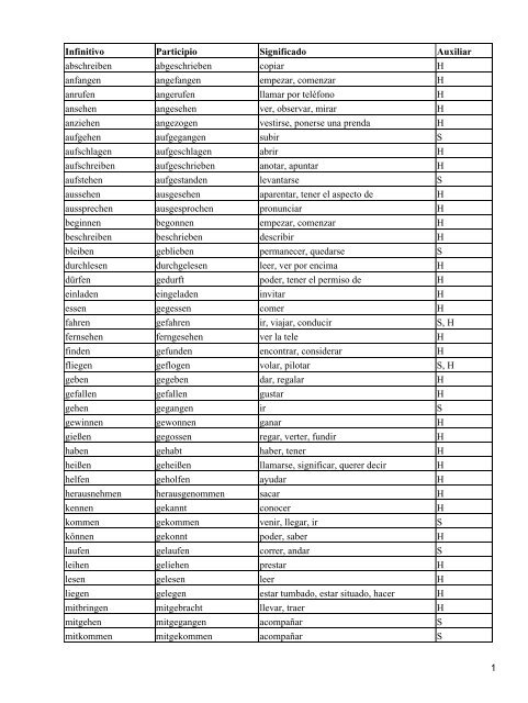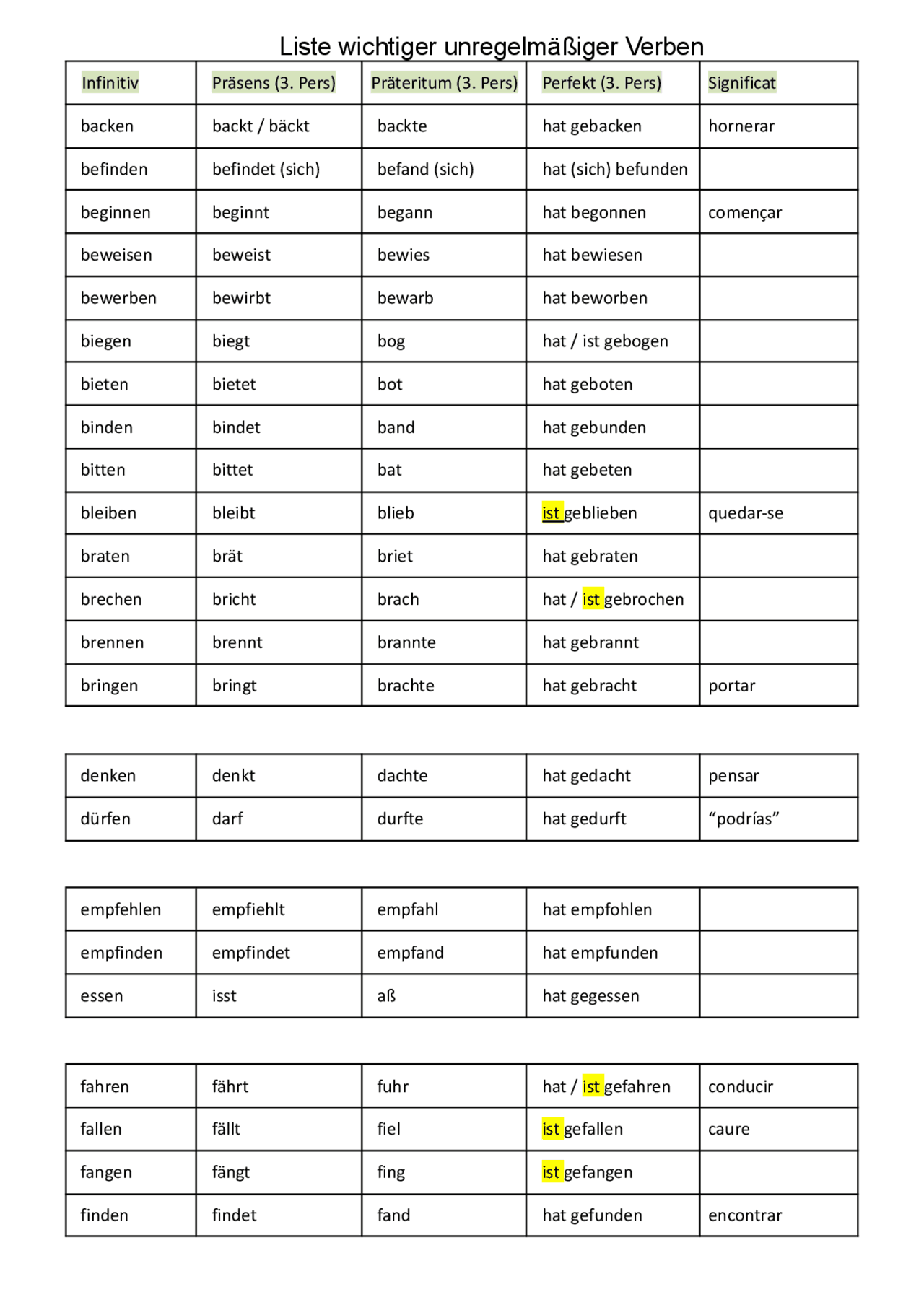 Lista de verbos irregulares alemanes (agrupados según tipo de ...