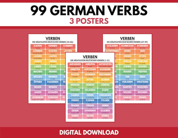 Idioma alemán, VERBOS MÁS UTILIZADOS en alemán, Tabla de 99 verbos ...