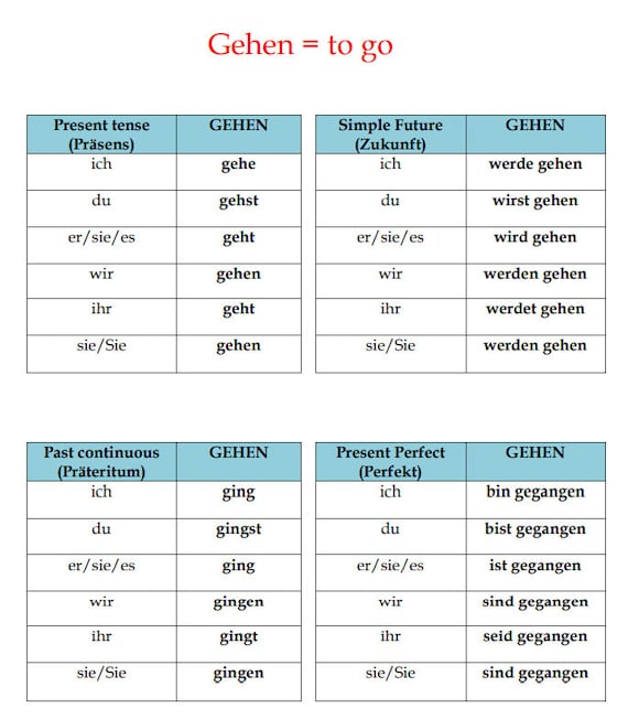 Tablas de conjugación de verbos alemanes / Verbos y tiempos ...