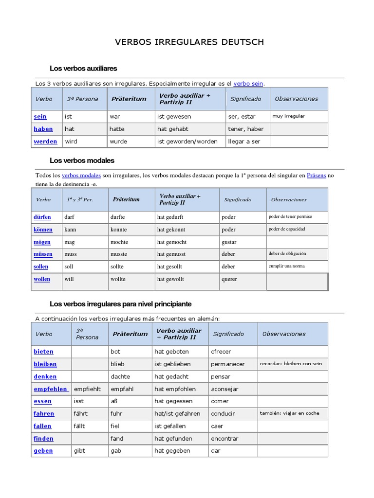 PDF) Verbos irregulares Aleman | Juan Ignacio Johnson - Academia.edu
