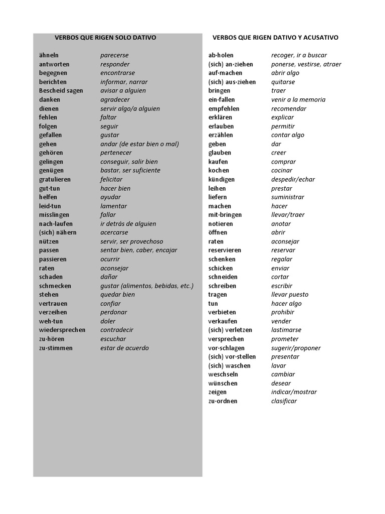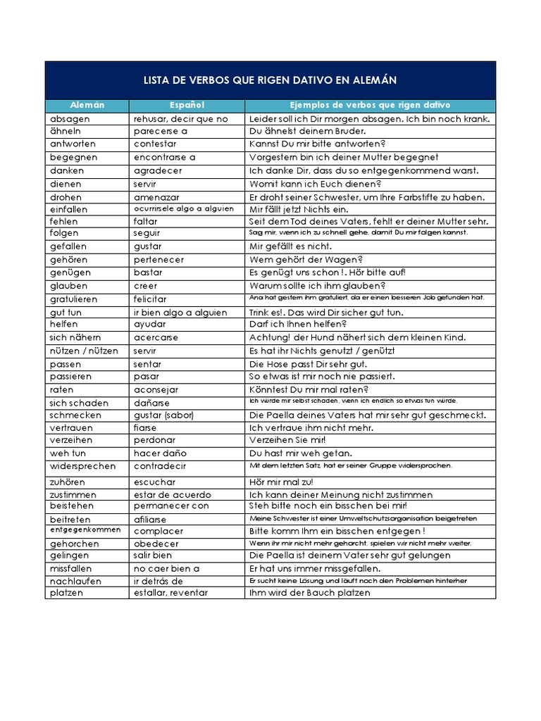 Lista de verbos alemanes con acusativo y/o dativo, con frases de ...