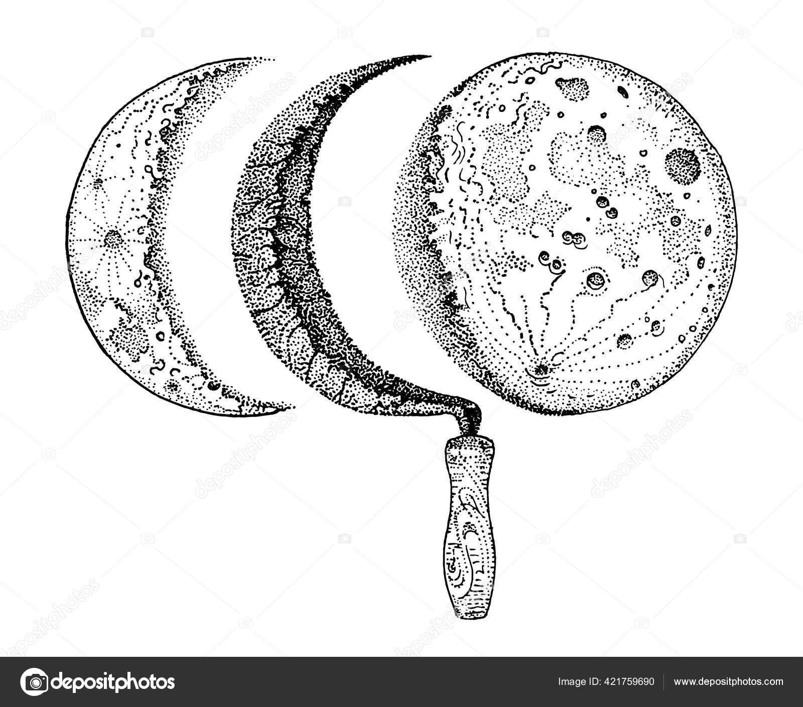 A Linha Tirada Arte E Ponto Do Estilo Mão Antiga Trabalha a Lua Cheia Isolada Tatuagem Chique De Boho Ou Ilustração Do Vetor Do P Ilustração do Vetor - Ilustração de sagrado,