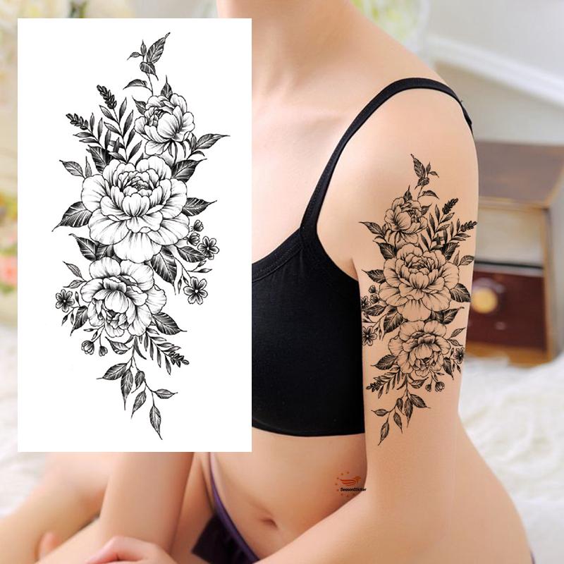 Tatuajes temporales de flores de peonía realistas para mujer ...