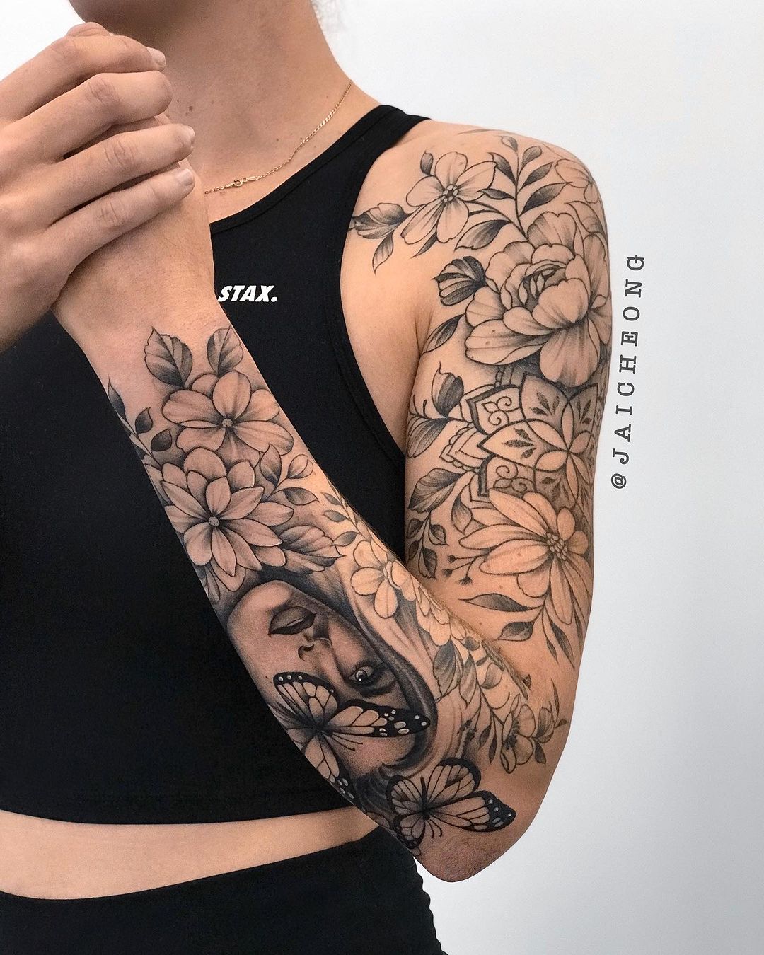 Tatuaje: Tatuaje Manga Completa Rostro Mujer Flores por jai ...