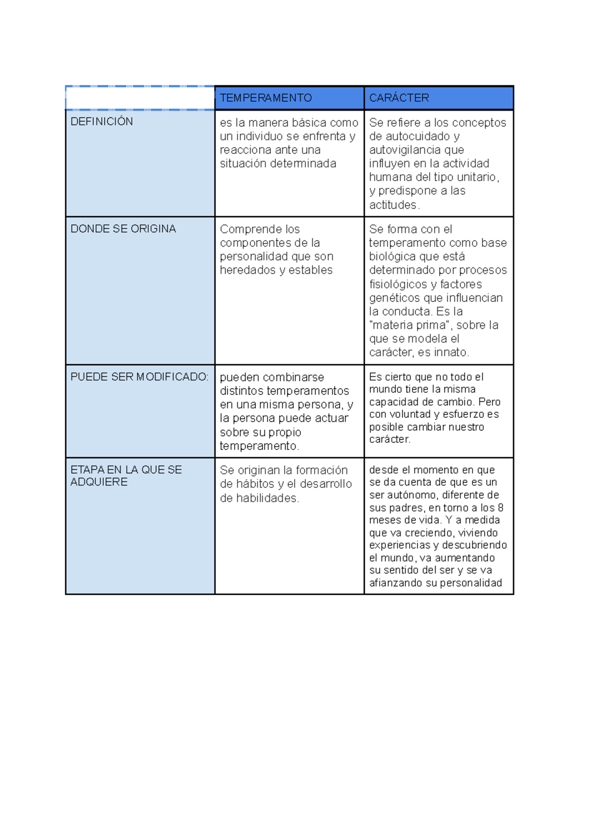 Cuadro comparativo sobre el carácter y el temperamento ...