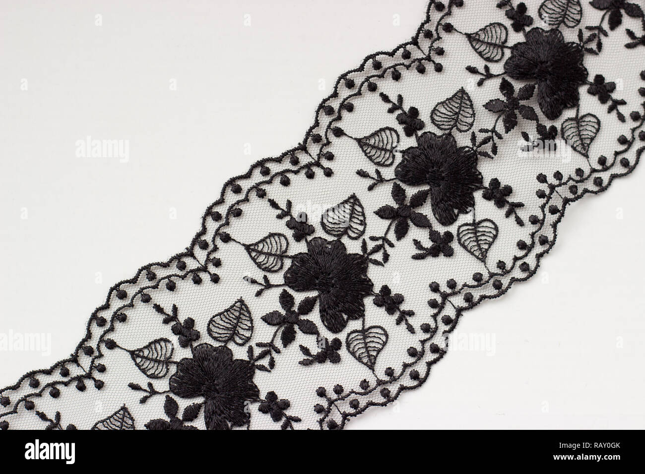 Encaje negro sobre fondo blanco; textura del fondo Fotografía de ...
